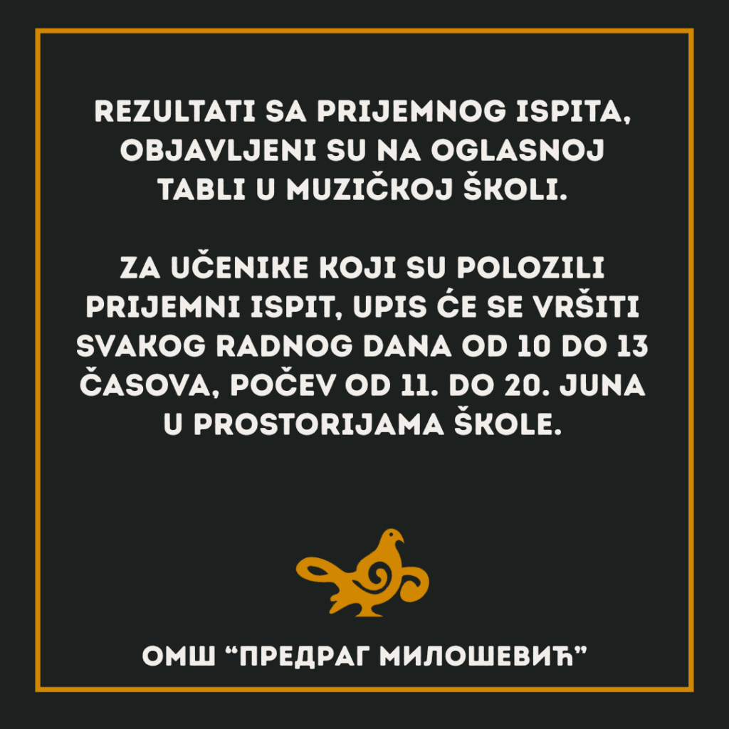 Резултати са пријемног испита, објављени су на огласној табли у музичкој школи.